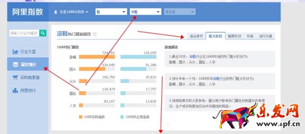 知道什么產品后,我們就要去找產品了,怎么找呢,直接進入阿里搜索,比如搜索:涼鞋女,然后銷量排名,再結合剛找出的款式屬性,就可以發現本身熱賣,屬性又符合我們需求的產品了。