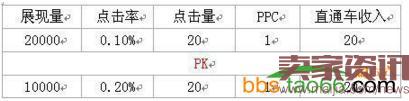 雖然以上只是一個假設,實際數據肯定會有所偏差,但當中道理是一樣的。由此可以很明顯看出,B方案可以大幅提升了點擊率和點擊量。所以,毫無疑問B方案就是直通車的選擇。