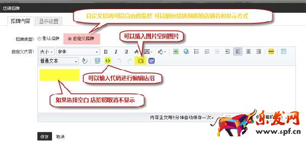 6.自定義招牌可以自由的輸入代碼,如果店招自定義區內什么都沒有是空白 店招就會“消失不見”
