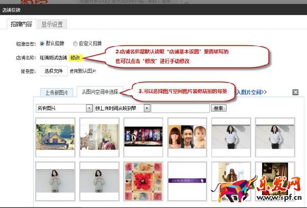 3.可以選擇圖片空間選擇圖片進行默認店招背景
