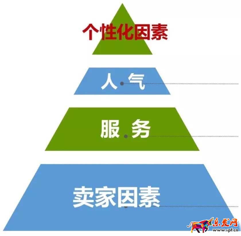 大家都知道以前PC端也有類目模型等等很多種模型,在無線端同樣也有,但是那些其實都是做淘寶最基礎的東西,如果你連類目都還放錯那還怎么做淘寶呢。我們今天主要講的是優化、快速打爆無線搜索流量的方法,所以今天我就從個性化因素、人氣、服務以及賣家因素這四方面為大家介紹下搜索漏斗模型。