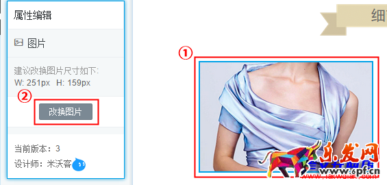 替換圖片–選擇模板中的商品圖片,在左側(cè)編輯區(qū)點擊改換圖片(如圖4),選擇或上傳您自己的圖片后,裁剪合適的圖片大小(如圖5)