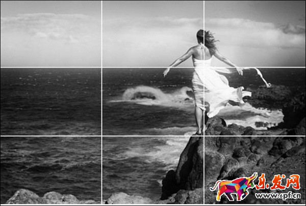 九宮格構圖,是最為常見、最基本的構圖方法,如果把畫面當作一個有邊框的面積,把左、右、上、下四個邊都分成三等分,然后用直線把這些對應的點連起來,畫面中就構成一個井字。