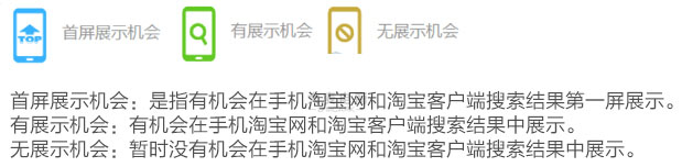 2、無線端展位,移動端的展位和PC的不同,沒有獨(dú)立的展示位置,因?yàn)闊o線的屏幕大多數(shù)都偏小所以直通車展位和自然搜索是混排在一起的,而不同的手機(jī)系統(tǒng)的展位的數(shù)量和排序方式又不一樣。ios系統(tǒng):1+5+1+5+1+10+1….每隔5個或者10個寶貝才有一個直通車展位;Android系統(tǒng):1+5+1+5+1+10+1….每隔5個或者10個寶貝才有一個直通車展位;Wap :1+20+2+20+2,每隔20個寶貝有2個直通車展位。無線端關(guān)鍵詞展現(xiàn)資格,關(guān)鍵詞必須達(dá)到6分才能夠在無線端有展現(xiàn)機(jī)會,達(dá)到7分以上有首頁展現(xiàn)機(jī)會,6分以下的關(guān)鍵詞則無展現(xiàn)機(jī)會。