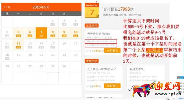 計算寶貝下架時間,比如9-5號下架,那么我們要報名的活動就是9-7號,我們在8-29就應該報名了,也就是在第一個下架時間報名,第二個下架時間卡在審核結束的時候,也就是活動開始前2天之前。因為下架時候權重最高,并且從下架到上架是權重是遞增的,表現(xiàn)好,通過率就高咯。