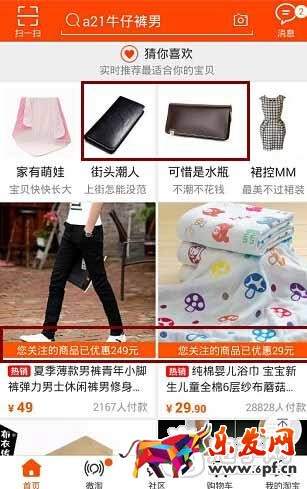 這個是手淘首頁的猜你喜歡,我們從上到下來看下個性化是多嚴重,首先搜索框推薦詞是a21牛仔褲男,而我最近就搜索了牛仔褲的關鍵詞(而且我搜這個詞的時候是在PC端搜的(登陸了賬號的))