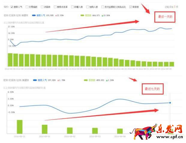 觀察近一天和近七天的流量變化,如果上升了,那么這款產品情景還是很不錯的!