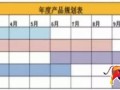 有了初步想法之后,需要填寫年度產(chǎn)品規(guī)劃表,下一個(gè)年度做什么產(chǎn)品,提前規(guī)劃出來,填進(jìn)表格中。因?yàn)榈赇佷N售的不同品類,銷售占比也都不同,對每個(gè)品類的供應(yīng)鏈、競爭優(yōu)勢、資源投入情況都不一樣。這里的例子中分了五大品類,相應(yīng)的重點(diǎn)每個(gè)月份都不一樣。