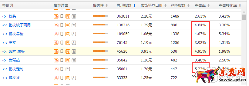 那在選詞的時(shí)候就要優(yōu)先選擇點(diǎn)擊率高的詞,但是也得關(guān)注展現(xiàn)指數(shù),有些詞點(diǎn)擊率很高,但是展現(xiàn)很少,這樣也是沒有什么效果的。