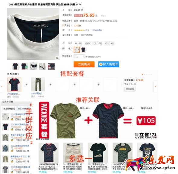 于是, 我們根據數據的指導,對寶貝頁的裝修進行以下調整,做到有的放矢,關聯寶貝的聯合使用,拉開戰場的寬度,充分應用常用的4種關聯營銷手段,從而打出一組漂亮的關聯營銷組合拳。