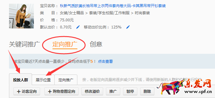 現(xiàn)在直通車頻繁的進行改版升級,給到我們操作多年的車手來說,每次的沖擊力都不小,現(xiàn)在的直通車數據更加的細致,明朗。如今的定向推廣,通過咱們前文中講的淘寶定位的買家標簽,定向推廣在這部分人群下面有了更高的精準性。如果咱們的產品屬于個性化,針對性較高的產品的話,定向是我們必不可少的一個嘗試點。而且咱這個秋季旺季到來的時候,這部分流量有很大的一股潛力。