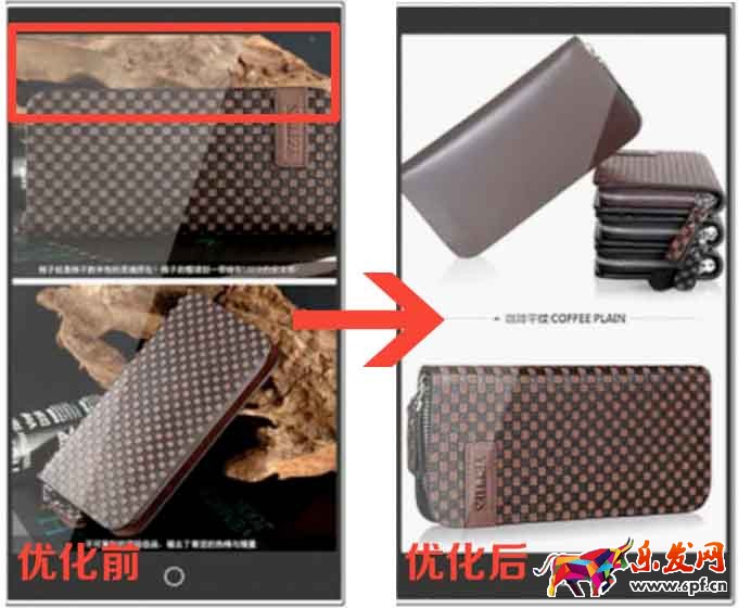 優化后:寶貝背景設置白色,簡潔明了;多角度展示、紋路皮質展示,信息傳達清晰。