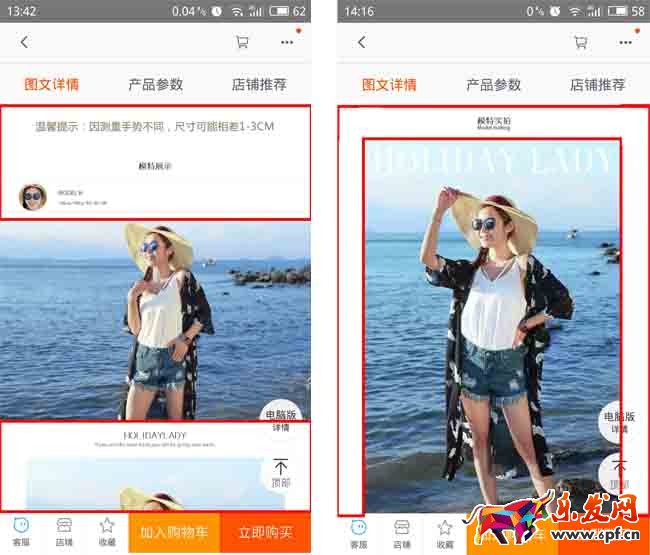 手機屏幕寬度是有限的,高度是比寬度長一點的,左中右的排版只能是讓圖片變小,看不到圖片的細節,這種排版方式是很難將細節傳達給買家的。