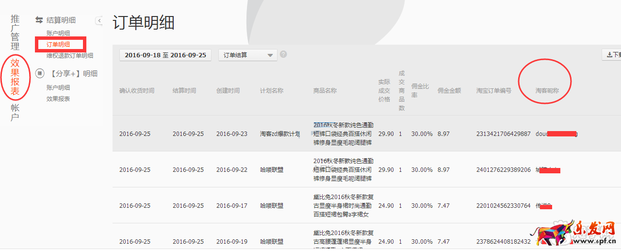 (2)通過淘寶客后臺查看推廣的歷史效果,單獨私聊效果稍微好的淘客。如圖: