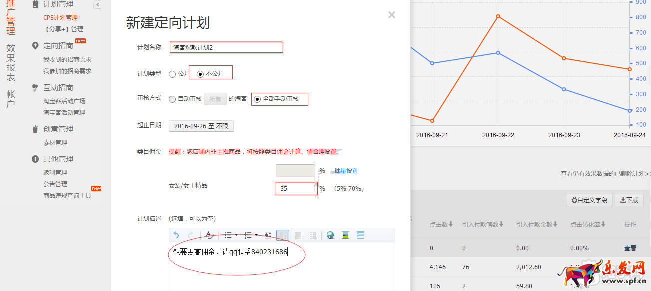 3、定向計劃:針對特定淘寶客 。傭金可自主根據淘客的推廣效果來決定,建議高傭金;
