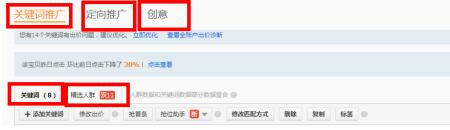 關鍵詞推廣、定向推廣、創意(關鍵詞里面還包含:關鍵詞和精選人群)。