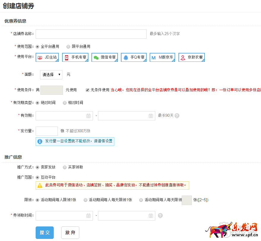 接著說一下券的設(shè)置,非常非常重要,尤其是無門檻的京券,某個選項設(shè)置錯誤,將帶來無法彌補的后果。以下針對券設(shè)置的每個項目做一個詳細的說明。