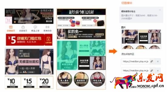 在無線頁面設計的時候要結合對應的模塊(如上介紹的切圖模塊),做好頁面的引導和產(chǎn)品/頁面的關聯(lián),或者加大曝光店鋪的主推產(chǎn)品。在引導方面,我們可以從一些分類的入口、自定義活動的入口,去引導消費者更加有目的性的去瀏覽更多的產(chǎn)品/頁面。