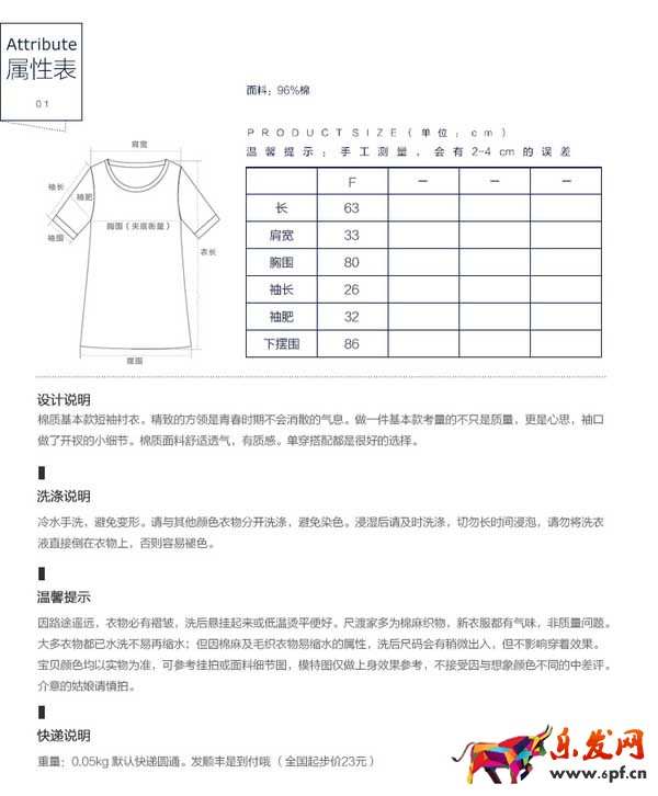 產(chǎn)品屬性的展示:比如面料、質(zhì)地、顏色、重量、洗滌建議、尺寸表等等。我知道很多人看到這里會(huì)說(shuō)我也不知道啊,我當(dāng)初也遇到到這個(gè)情況。給自己找個(gè)借口很簡(jiǎn)單,但往往就是這些難處成為你和別人拉開(kāi)距離的根本所在。你可以去問(wèn)、去學(xué)、去百度,如果你自己都不了解自己的寶貝,你憑什么讓別人也認(rèn)為這是個(gè)好東西?