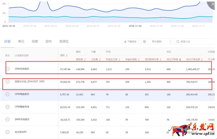 在從推廣計劃截圖看,CPM無線首頁的成交花費是3萬7,成交金額148萬,下面的自定義花費4萬5,成交70萬,這個要思考下了,店鋪如果適合CMP的話就盡情地投放CMP吧,不要管什么CPC了。這個也是給大家建議,不要一味地追求CPC的高精準,也許你的店鋪根本不適合CPC這種模式,一定是根據(jù)自己的店鋪,分析自己的數(shù)據(jù),結(jié)合淘寶的推廣工具,能有一套適合自己的推廣方法。