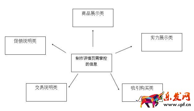 上一個是比較不錯的案例,那么在制作詳情頁的時候,哪些必要的信息又是我們需要掌握與掌控的呢?大概可以由5個部分應用而言,細分如下: