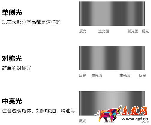 1、新建圖層,分別添加瓶身和瓶身邊緣的陰暗面積,應用對稱光,(高斯模糊,透明度調低,柔光)