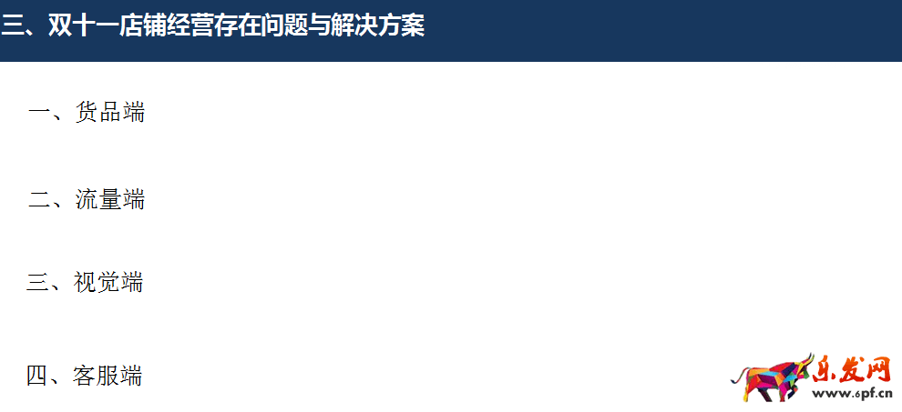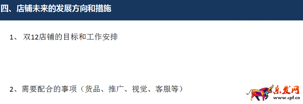 這部分內容需要結合以上的數據進行歸納總結,然后給出解決方案,從而可以避免在下次大促或者雙12的時候不會再出現同樣的問題。例如,貨品選擇是否正確的,備貨是否充足?流量是否充足?是否需要考慮一些補充流量渠道?視覺方面是否能營造氛圍?是否能突出賣點吸引成交提高轉化率?客服方面是否有做到引導客戶多拍提高客單?是否有及時去催付提高下單轉化率?若是沒有是不是需要把如何解決這些問題的方案列出來,然后在下次大促或者雙12的時候進行優化改進呢?