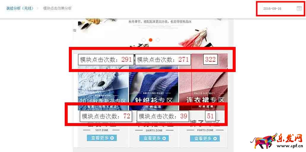 首先呢,要借用到店鋪里的生意參謀看數(shù)據(jù)。把對應(yīng)之前的頁面,跟優(yōu)化后的頁面,進(jìn)行測試,可以放兩天進(jìn)行測試。然后可以很清楚的看到,我們做的圖放到頁面上是有多少個人點(diǎn)擊,多少人會去看了去點(diǎn)擊的,這樣我們就可以知道我們的頁面做的好不好呢。所以說呢,你的頁面你做主!也可以自己沒事去看看數(shù)據(jù),再進(jìn)行優(yōu)化。(截取無線頁面)如圖: