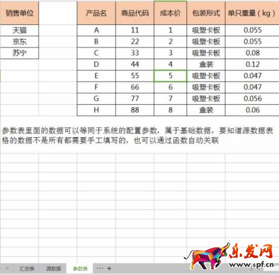 我們往后的需要做的就是要完善我們的源數據表,這個源數據表格就是你以后偷懶的一個工具表格,所有信息都在里面調用,我調用東哥的例子,大家再看一下: