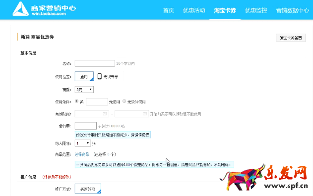 點(diǎn)擊立即創(chuàng)建,進(jìn)入新建商品優(yōu)惠券的頁(yè)面。