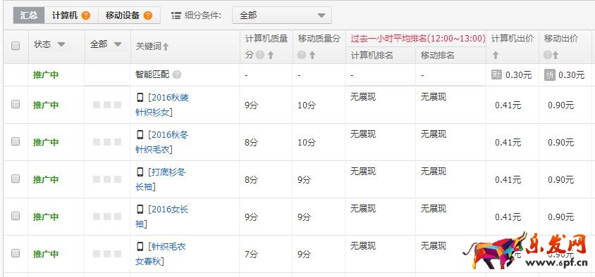 第二天我們來檢查前一天的數據,哪些詞數據不好,展現比較差和點擊率很低的詞我們刪除掉,再添加一些新的詞進去,和前面的方法一樣選詞,重新測試,在連續幾天這樣的操作后,我們就可以得到一批數據不錯的詞,配合一些店鋪的營銷方式,效果就會很不錯了。