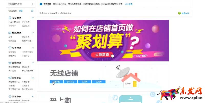 確認完畢后,返回到營銷中心,點擊手機淘寶店鋪