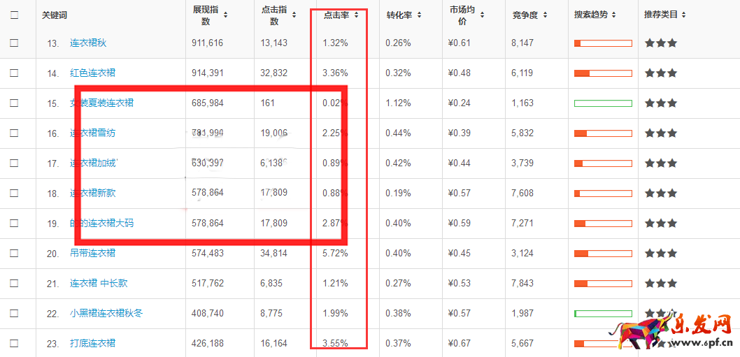 我們選詞根據詞的數據表現選擇點擊率比較高,全網的展現和點擊指數也還可以的,如果競爭度也不是很大的詞那就更好了。因為主要是做點擊率養分,所以轉化率就不用考慮太多,不過做轉化和roi那么就一定要考慮轉化率的問題了。