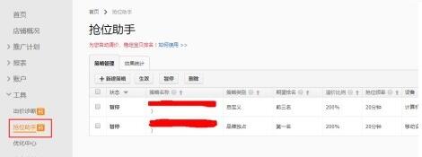 關(guān)鍵詞推廣頁(yè)面,點(diǎn)擊搶位助手工具