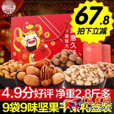 人們對數(shù)字比較敏感,下圖中的堅果主圖上直接標(biāo)明產(chǎn)品重量和價格,讓顧客在瀏覽的時候可以很快判斷產(chǎn)品的優(yōu)惠力度,價格文案決定之后的顧客點擊量。