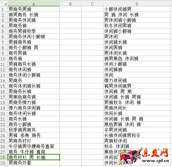 這里第一列是 商務(wù)褲 第二列是 休閑褲