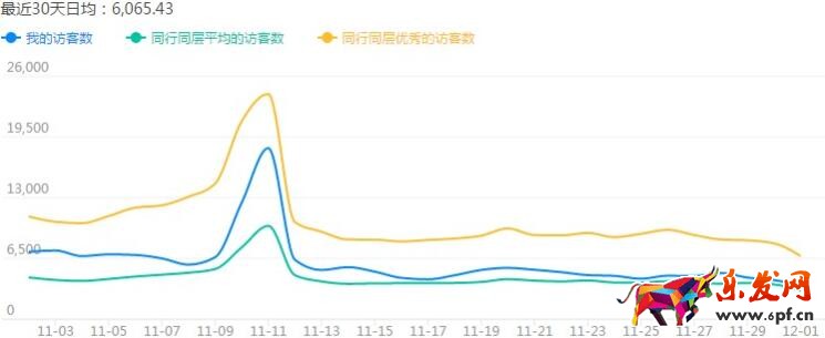 11月底合作的商家,可以看到11月從雙十一之后,訪客一直在跌,最低日訪客都已經跌到2500了: