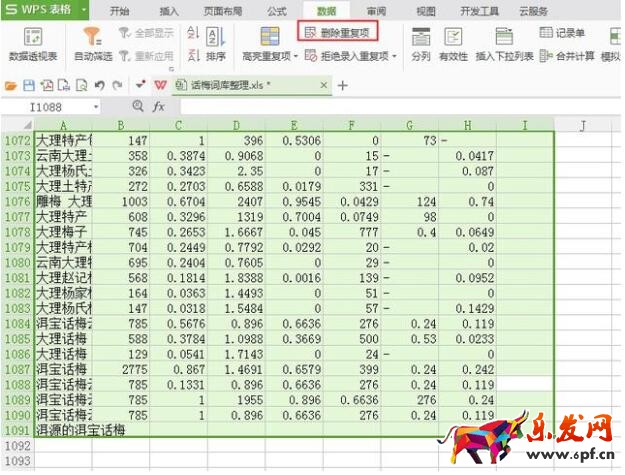 第三步、清除關鍵詞粘貼過來的格式,刪除數據的重復項。我們就得到了像上面的這么一張表格。