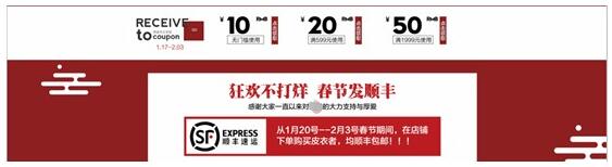 過年期間配合店鋪優(yōu)惠券與重點(diǎn)款春節(jié)狂歡不打烊,直接簡(jiǎn)單粗暴順豐包郵。