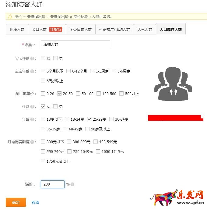 當我們知道我們的人群之后這里投放就將是非常精準的人群了,所以這里我采用的是高溢價。