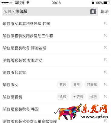a、淘寶PC與手機淘寶搜索的下拉框詞,這絕對大流量詞以瑜伽服為例。