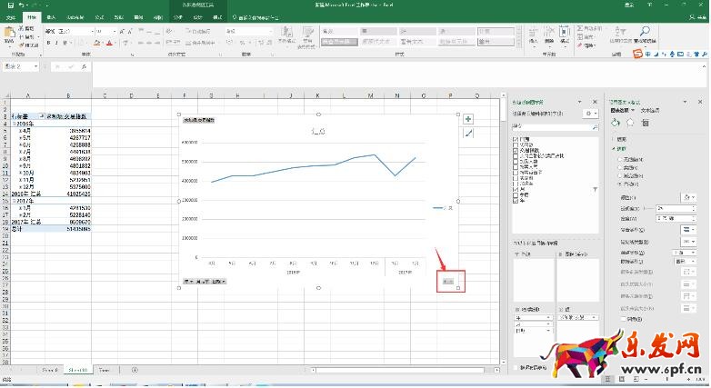 我們不妨把觀測的時間粒度轉換成【月份】,在圖表右下角單擊【+】號。效果如下圖所示,按月份展示數據就有了可讀性。