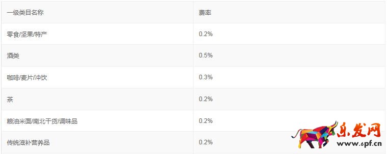 食品各一級類目現(xiàn)行費率如下: