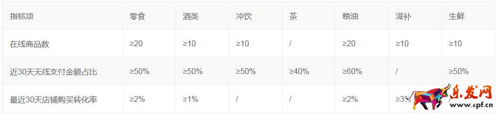 2、店鋪主營類目需屬于以下幾個一級類目之一:“零食/堅果/特產(chǎn)”、“酒類”、“咖啡/麥片/沖飲”、“茶”、“糧油米面/南北干貨/調(diào)味品”、“傳統(tǒng)滋補營養(yǎng)品”、“水產(chǎn)肉類/新鮮蔬果/熟食”。