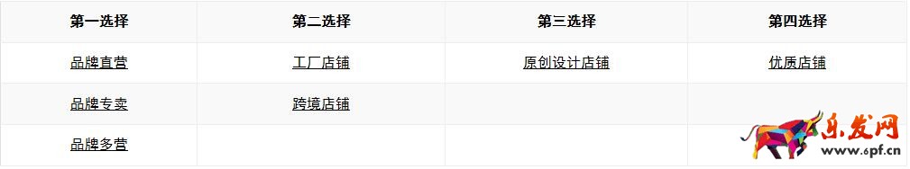 一個賣家只能選擇一種最適合自己的角色身份進行報名。當您同時符合兩種及以上角色身份時,第一選擇應該是“品牌類”,如不符合再選入駐第二選擇,以此類推(如下表)。如果前三種選擇都沒有適合您的角色,可選擇“優質店鋪”角色進行報名。