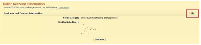 進入后就是Seller Account Information頁面,我們可以看到此時的Seller Category仍舊是Individual,右側有一個可點擊的edit按鈕,如圖: