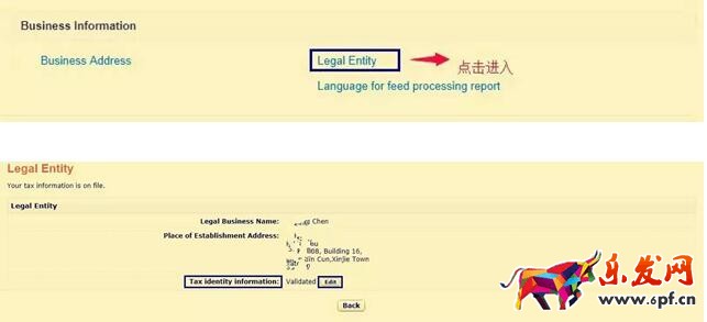 2. Account Infor 頁面展示的是賣家賬戶信息,找到 Business Information 版塊,點擊進入Legal Entity 頁面,如圖: