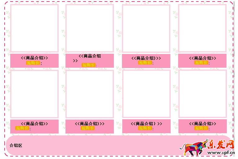 area id="code2" cols="110" style="width:100%;height:350px;"><table height="500" cellspacing="0" cellpadding="0" width="738" align="center" border="0"> <tbody> <tr> <td><img height="15" src="http://img.sanjiaoli.com/cuxiao/028/a_r1_c1.gif" _fcksavedurl="http://img.sanjiaoli.com/cuxiao/028/a_r1_c1.gif" width="738" border="0" /></td> <td><img height="15" src=http://www.0916keyu.com/skin/qyskindir/image/nopic.gif _fcksavedurl=http://www.0916keyu.com/skin/qyskindir/image/nopic.gif width="1" border="0" /></td> </tr> <tr> <td valign="top" align="left" width="738" background="http://img.sanjiaoli.com/cuxiao/028/a_r2_c1.gif" height="143"><table cellspacing="0" cellpadding="0" width="100%" border="0"> <tbody> <tr> <td width="26"> </td> <td width="143" height="143"> </td> <td width="35" height="143"> </td> <td width="143"> </td> <td width="38"></td> <td width="143"> </td> <td width="38"> </td> <td width="144"> </td> <td width="28"> </td> </tr> </tbody> </table></td> <td><img height="143" src=http://www.0916keyu.com/skin/qyskindir/image/nopic.gif _fcksavedurl=http://www.0916keyu.com/skin/qyskindir/image/nopic.gif width="1" border="0" /></td> </tr> <tr> <td valign="center" align="left" width="738" background="http://img.sanjiaoli.com/cuxiao/028/a_r3_c1.gif" height="68"><table cellspacing="0" cellpadding="0" width="100%" border="0"> <tbody> <tr> <td valign="top" align="left" height="45"><table cellspacing="0" cellpadding="0" width="100%" border="0"> <tbody> <tr style="FONT-SIZE: 10pt"> <td width="21"> </td> <td valign="center" align="left" width="152"><div style="FONT-SIZE: 12pt" align="center"><strong style="FONT-SIZE: 10pt"><<商品介紹>><br /> </strong><img src="http://img.sanjiaoli.com/cuxiao/028/ac3f41e9255970412083e68a23e61365.gif" />:</div></td> <td width="27"> </td> <td width="151" height="45"><div style="FONT-SIZE: 10pt" align="center"><strong><<商品介紹>> </strong><img src="http://img.sanjiaoli.com/cuxiao/028/ac3f41e9255970412083e68a23e61365.gif" />:</div></td> <td width="31"> </td> <td width="151"><div style="FONT-SIZE: 10pt" align="center"><strong style="FONT-SIZE: 10pt"><<商品介紹)>><br /> <img src="http://img.sanjiaoli.com/cuxiao/028/ac3f41e9255970412083e68a23e61365.gif" />:</strong></div></td> <td width="30"> </td> <td width="152"><div align="center"><strong><<商品介紹>><br /> <img src="http://img.sanjiaoli.com/cuxiao/028/ac3f41e9255970412083e68a23e61365.gif" />:</strong></div></td> <td width="23"> </td> </tr> </tbody> </table></td> </tr> </tbody> </table></td> <td><img height="68" src=http://www.0916keyu.com/skin/qyskindir/image/nopic.gif _fcksavedurl=http://www.0916keyu.com/skin/qyskindir/image/nopic.gif width="1" border="0" /></td> </tr> <tr> <td valign="top" align="left" width="738" background="http://img.sanjiaoli.com/cuxiao/028/a_r4_c1.gif" height="144"><table cellspacing="0" cellpadding="0" width="100%" border="0"> <tbody> <tr> <td width="26"> </td> <td width="143" height="144"> </td> <td width="35" height="144"> </td> <td width="143"> </td> <td width="38"> </td> <td width="145"> </td> <td width="36"> </td> <td width="144"> </td> <td width="28"> </td> </tr> </tbody> </table></td> <td><img height="144" src=http://www.0916keyu.com/skin/qyskindir/image/nopic.gif _fcksavedurl=http://www.0916keyu.com/skin/qyskindir/image/nopic.gif width="1" border="0" /></td> </tr> <tr> <td valign="center" align="left" width="738" background="http://img.sanjiaoli.com/cuxiao/028/a_r5_c1.gif" height="65"><table cellspacing="0" cellpadding="0" width="100%" border="0"> <tbody> <tr> <td width="21"> </td> <td valign="center" align="left" width="152"><div style="FONT-SIZE: 10pt" align="center"><strong><<商品介紹>><br /> <img src="http://img.sanjiaoli.com/cuxiao/028/ac3f41e9255970412083e68a23e61365.gif" />: </strong></div></td> <td width="27"> </td> <td valign="center" align="left" width="151" height="45"><div style="FONT-SIZE: 10pt" align="center"><strong><<商品介紹)>><br /> <img src="http://img.sanjiaoli.com/cuxiao/028/ac3f41e9255970412083e68a23e61365.gif" /> </strong></div></td> <td width="31"> </td> <td width="152"><div style="FONT-SIZE: 10pt" align="center"><strong><<商品介紹)>><br /> <img src="http://img.sanjiaoli.com/cuxiao/028/ac3f41e9255970412083e68a23e61365.gif" />: </strong></div></td> <td width="29"> </td> <td width="152"><div style="FONT-SIZE: 10pt" align="center"><strong><<商品介紹>><br /> <img src="http://img.sanjiaoli.com/cuxiao/028/ac3f41e9255970412083e68a23e61365.gif" />: </strong></div></td> <td width="23"> </td> </tr> </tbody> </table></td> <td><img height="65" src=http://www.0916keyu.com/skin/qyskindir/image/nopic.gif _fcksavedurl=http://www.0916keyu.com/skin/qyskindir/image/nopic.gif width="1" border="0" /></td> </tr> <tr> <td valign="top" align="left" width="738" background="http://img.sanjiaoli.com/cuxiao/028/a_r6_c1.gif" height="65"><table cellspacing="0" cellpadding="0" width="100%" border="0"> <tbody> <tr> <td width="2%"> </td> <td valign="center" align="left" width="96%" height="60"><font face="幼圓"><strong style="FONT-SIZE: 10pt">介紹區</strong></font></td> <td width="2%"> </td> </tr> </tbody> </table></td> <td><img height="65" src=http://www.0916keyu.com/skin/qyskindir/image/nopic.gif _fcksavedurl=http://www.0916keyu.com/skin/qyskindir/image/nopic.gif width="1" border="0" /></td> </tr> </tbody> </table>小編提醒各位賣家修改網店促銷裝修代碼中的文字內容,添加寶貝后使用到店鋪裝修當中哦!area>