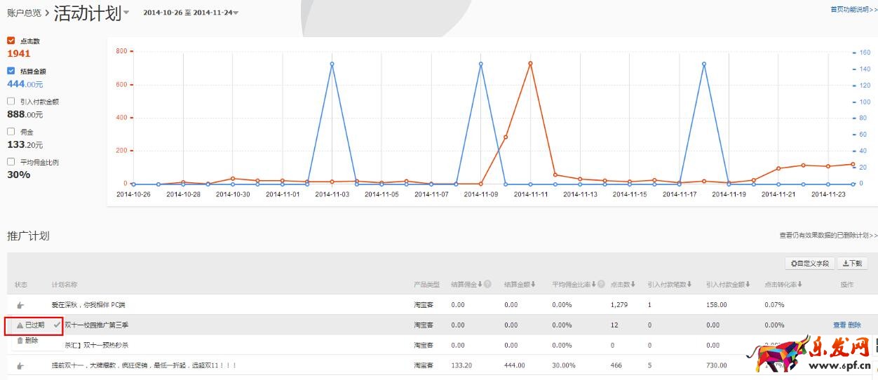 具體的頁面是這樣的。已結束的就說明活動結束了,推廣中就是正在推廣。已失效說明審核不通過。