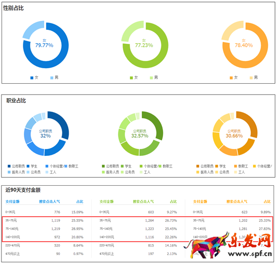 至少從這些數(shù)據(jù)上來看,我們發(fā)現(xiàn)這三種連衣裙的人群畫像基本是吻合的,只不過喜歡“蕾絲連衣裙”的消費者更年輕化一些。那么是不是意味著這三種連衣裙的目標人群特征就完全一樣呢?肯定不是,因為還有很多更影響消費者購買需求的因素并沒有通過這些指標體現(xiàn)出來。